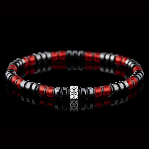 "title": "Red Silver \u0026 Hematite Bracelet IX (6mm)",